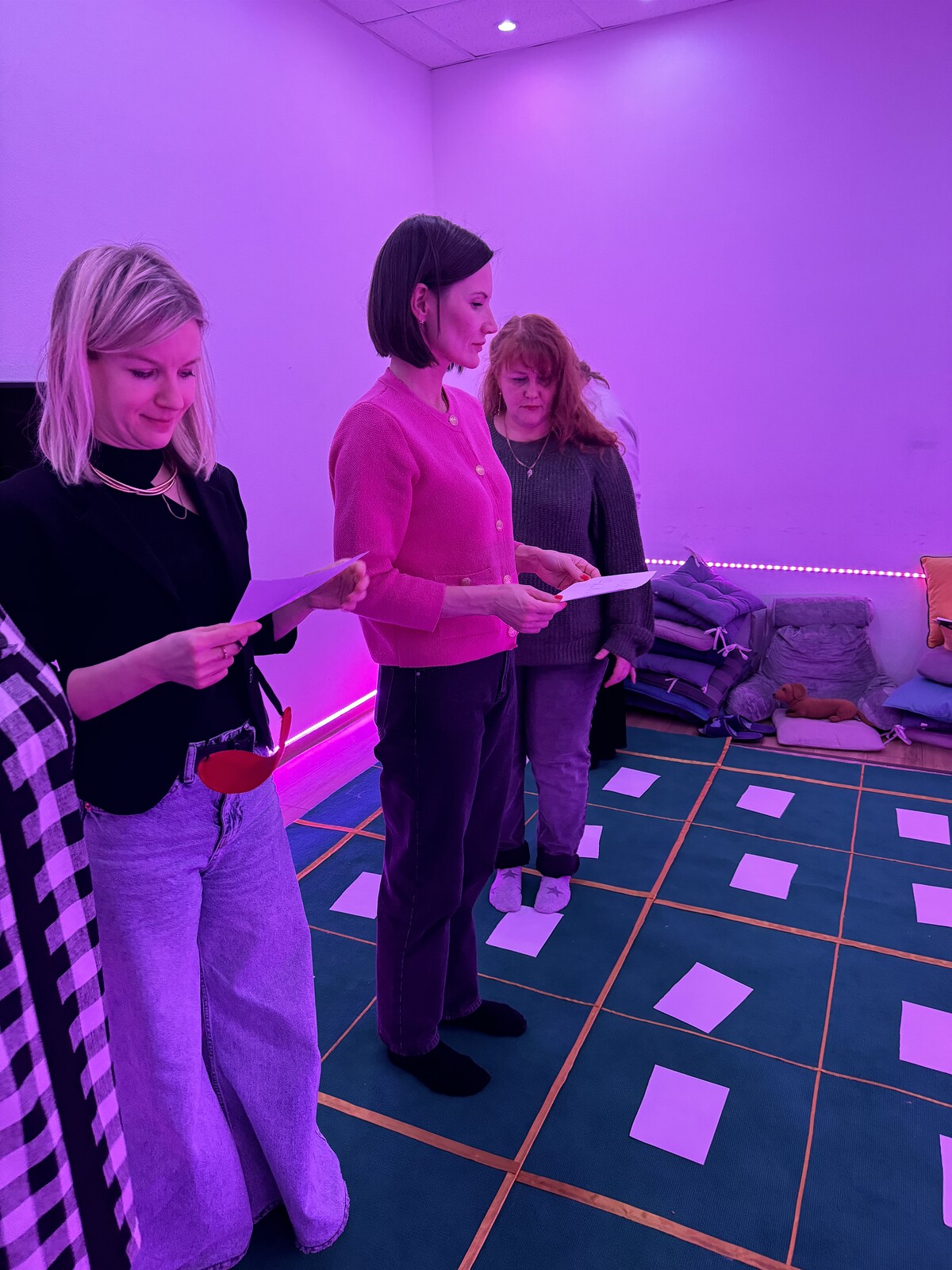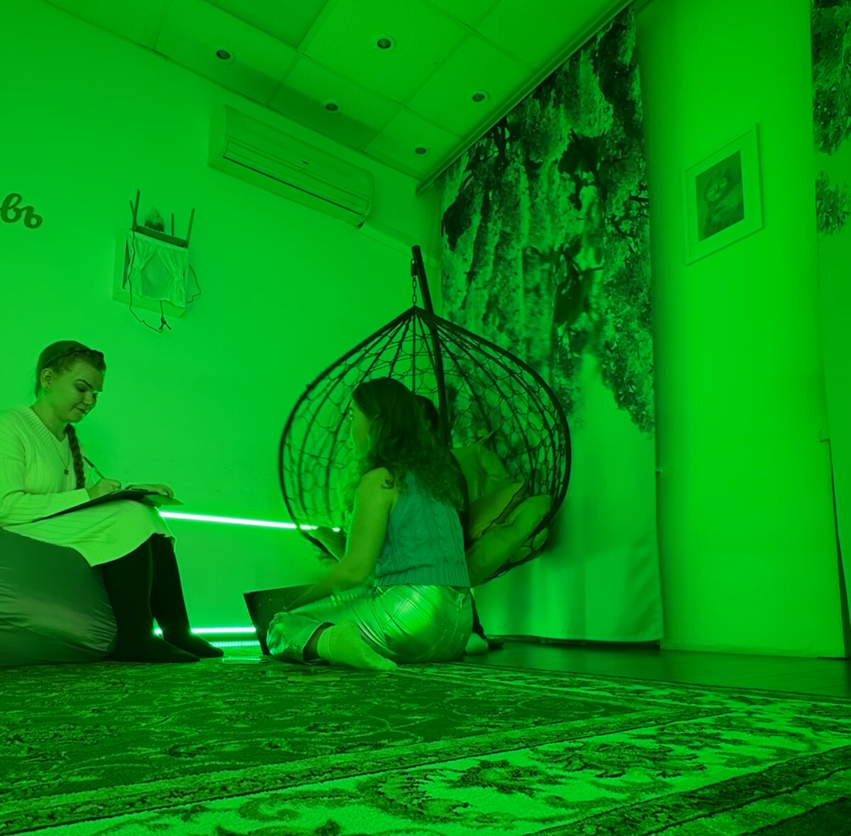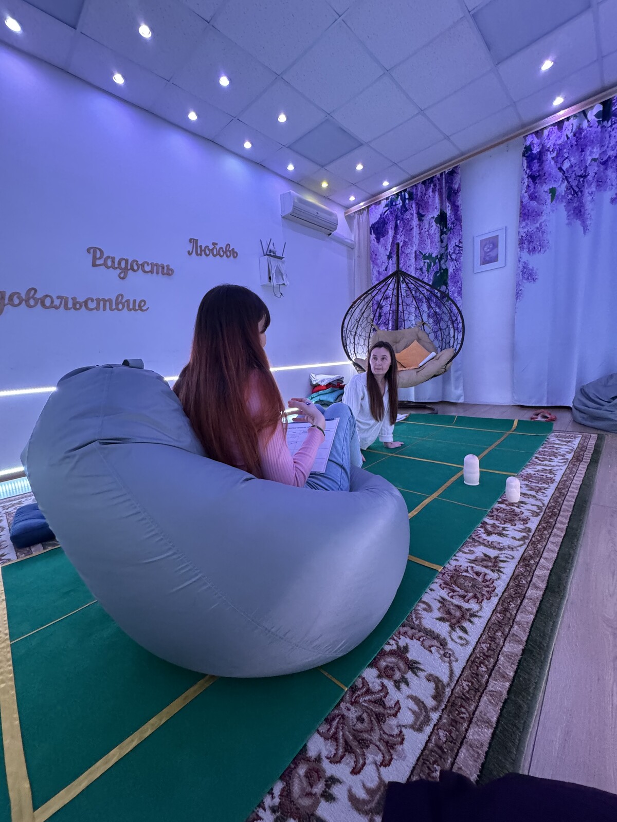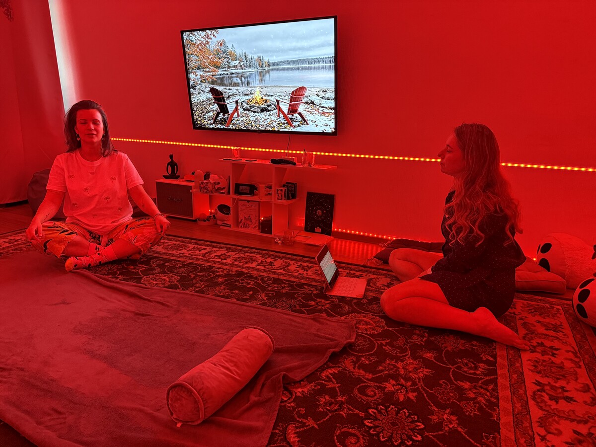 Музыка и свет, соответствующие энергетическим центрам, помогают настроиться и доверять процессу.